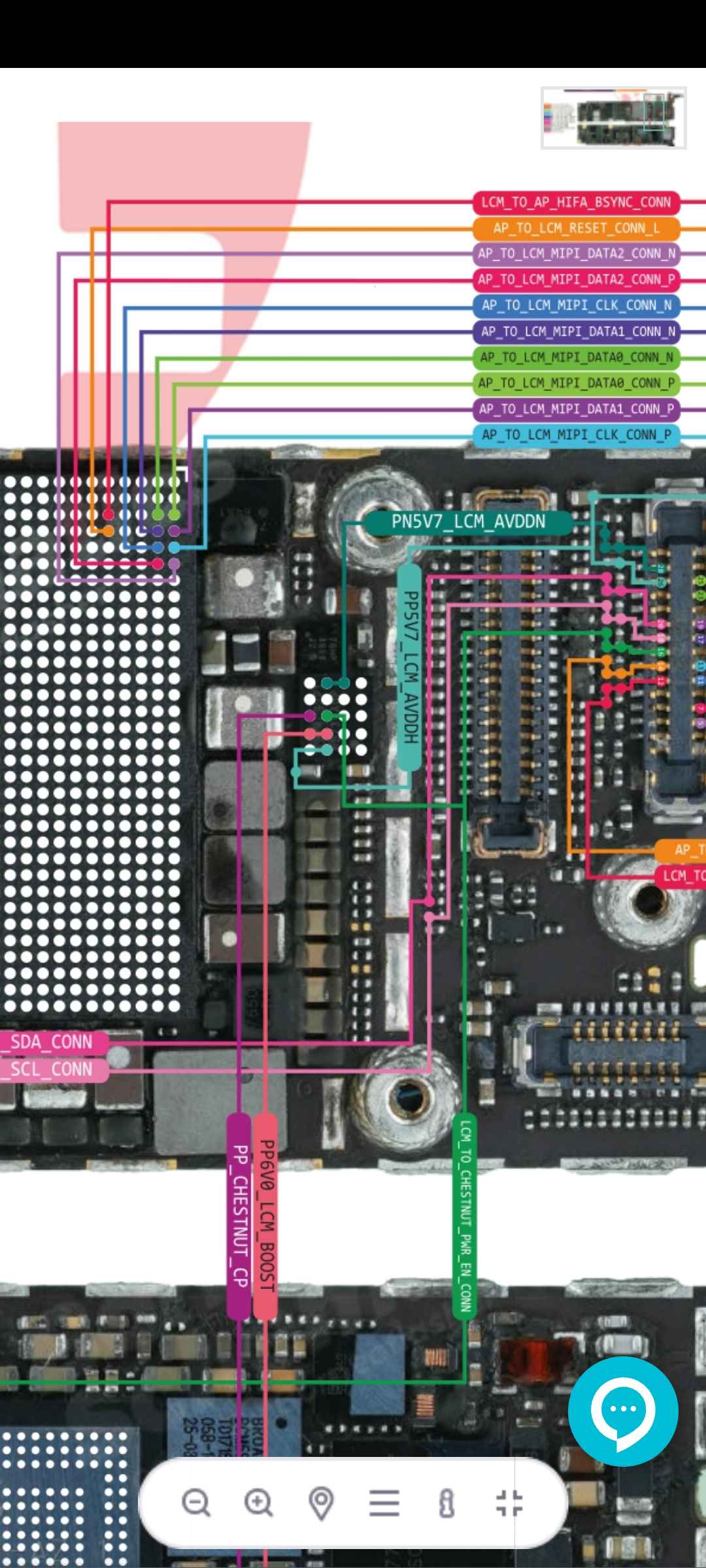 تعمیر این مدار نیاز به آشنایی با مسیرهای ولتاژ دارد. شماتیک آیفون این اطلاعات را به طور دقیق ارائه می‌دهد.