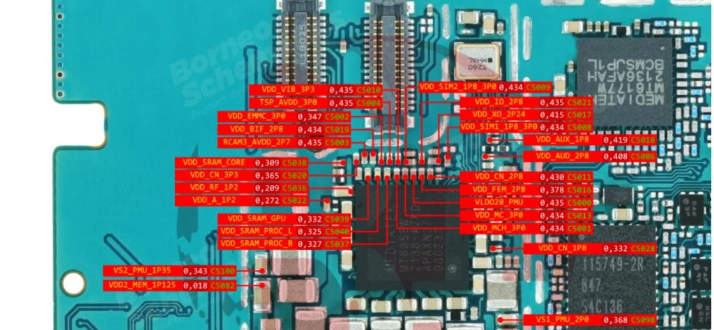 همچنین در این مدل، مدار مدیریت تغذیه (PMIC) با کنترل حرارتی هوشمند همراه است که در نقشه بهوضوح قابل مشاهده است.