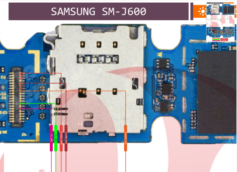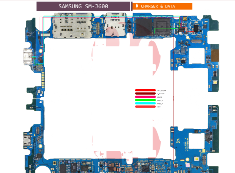 شماتیک سامسونگ J6 مسیرهای برق، ولتاژها و جای دقیق هر قطعه را نشان میدهد.