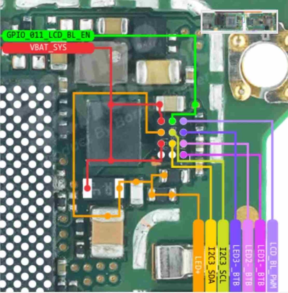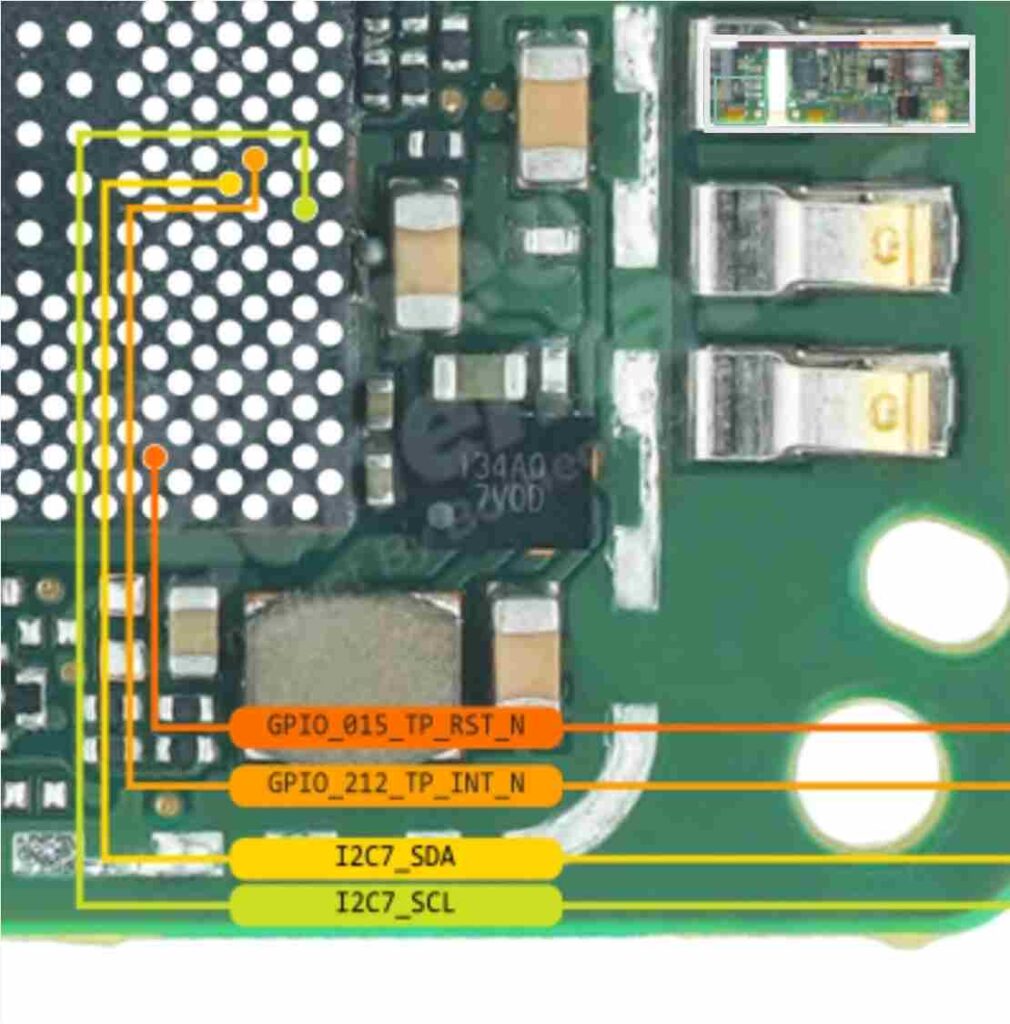کانکتورها، مسیرهای MIPI و آیسی درایور نمایشگر و تاچ طبق نقشه مشخص هستند. مشکلات تصویر و تاچ با اندازهگیری ولتاژ و سیگنالها روی تستپوینتها قابل شناسایی است.
