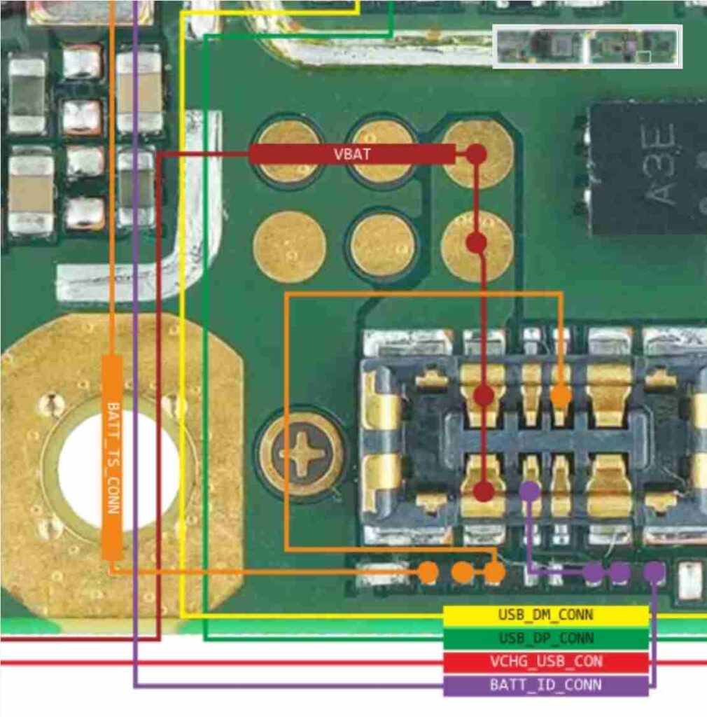 این بخش شامل IC شارژ، مسیرهای VBUS، مقاومتها و فیلترهاست. خرابی یا قطعی مسیرها باعث شارژ نشدن یا اتصال ناموفق به کامپیوتر میشود. تست ولتاژ و دیتا طبق نقشه راهنمایی دقیقی برای تعمیرکار ارائه میدهد.