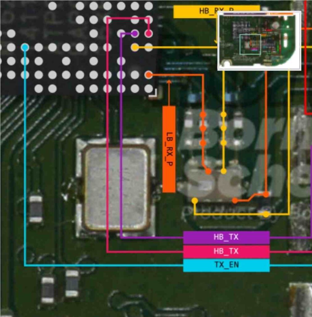 نقشه نوکیا ۲۲۰ امکان ردیابی کامل مسیر آنتن خارجی تا بخشهای پردازش سیگنال RF را فراهم میکند. مشکلاتی مانند “عدم آنتندهی” یا “افت شبکه” معمولاً ناشی از خرابی در خطوط سوئیچینگ، فید آنتن یا صدمهدیدن قطعات RF هستند.