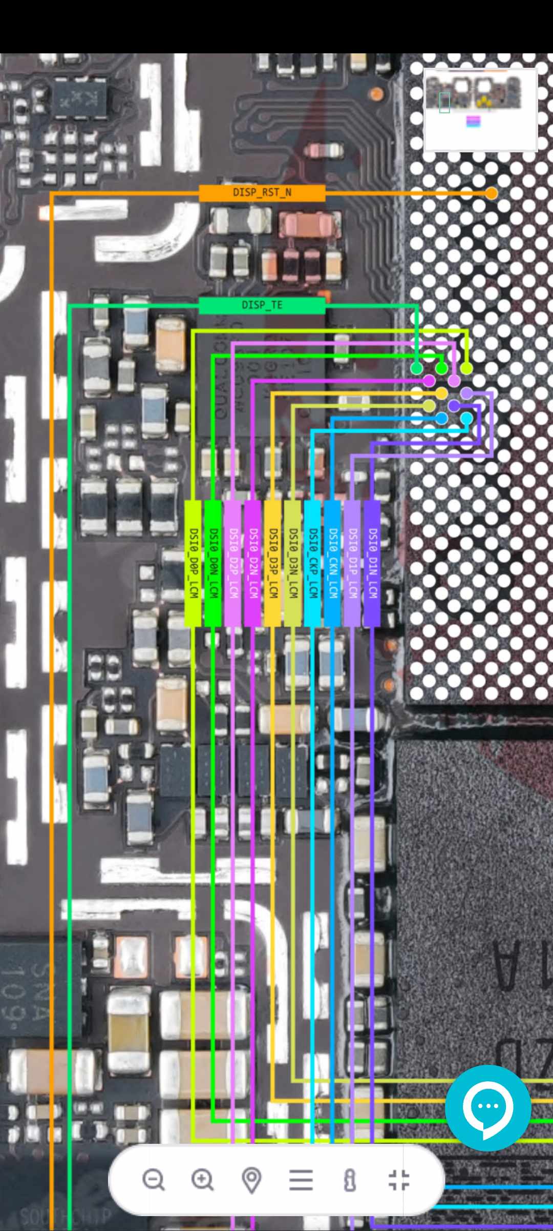 در نقشه هواوی آنر ۵۰، مسیرهای مربوط به درایور نمایشگر (Display IC) مشخص هستند. با بررسی این مسیرها می‌توان ایرادات ناشی از قطعی فلت، آسیب پدها یا نوسان ولتاژ در مدار تغذیه را تشخیص داد.